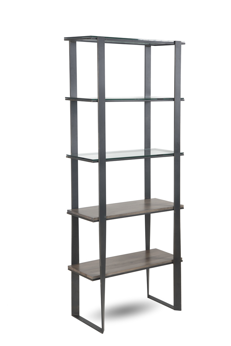 - Shelf Materials: Glass ?”, Ash ¾”, Maple ¾”, Walnut ¾” (Top three shelves are always glass, bottom two shelves can be glass or wood)