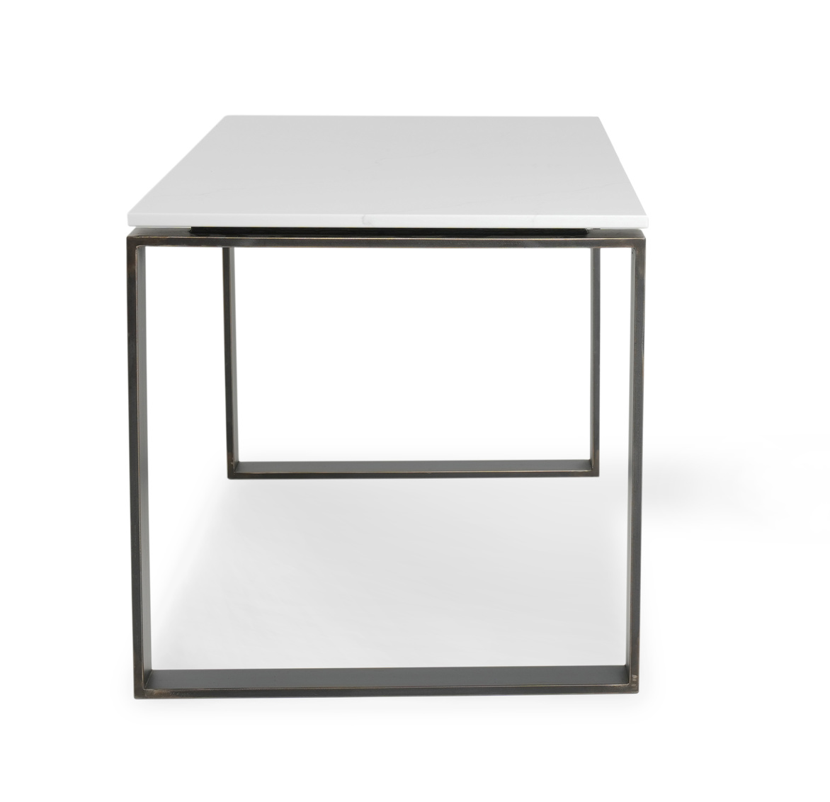 The Oslo Collection is a recent introduction and continues our design focus on super-clean lines with a keen attention to the way materials work together. The bases are made with 3-inch wide solid steel flat bar creating a look that is simultaneously powerful yet elegant. The collection is available with a variety of tops. We offer two wood species — maple and walnut, as well as a white quartz top or a white back-painted, acid-etched glass. The steel is available in a wide range of powder coat paint finishes and the maple is also available in a wide range of finishes. Walnut is available with a clear coat only.