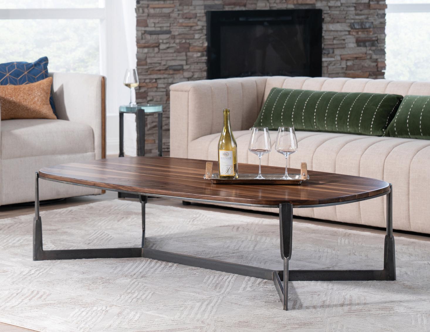 The Fraser Rectangular Cocktail Table combines modern edge with handcrafted quality. Its clean, geometric steel base supports a sleek wood... Show more