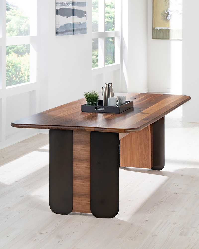 This handcrafted Communal Table features softly curved edges and metal accents that highlight its sculptural form. Available in your choice... Show more