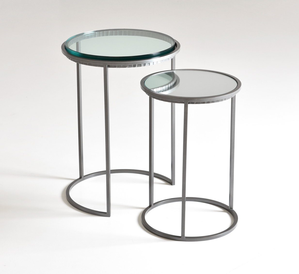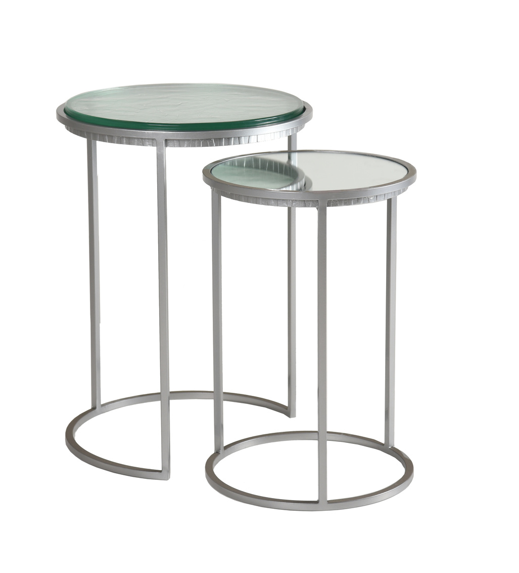 Our Carolina Nesting Tables call to mind stately pillars, one inside of the other. This piece lends an antique look to any living area. It is hand-forged in our North Carolina factory and available in your choice of finishes. Please note that the small table top is always mirror.