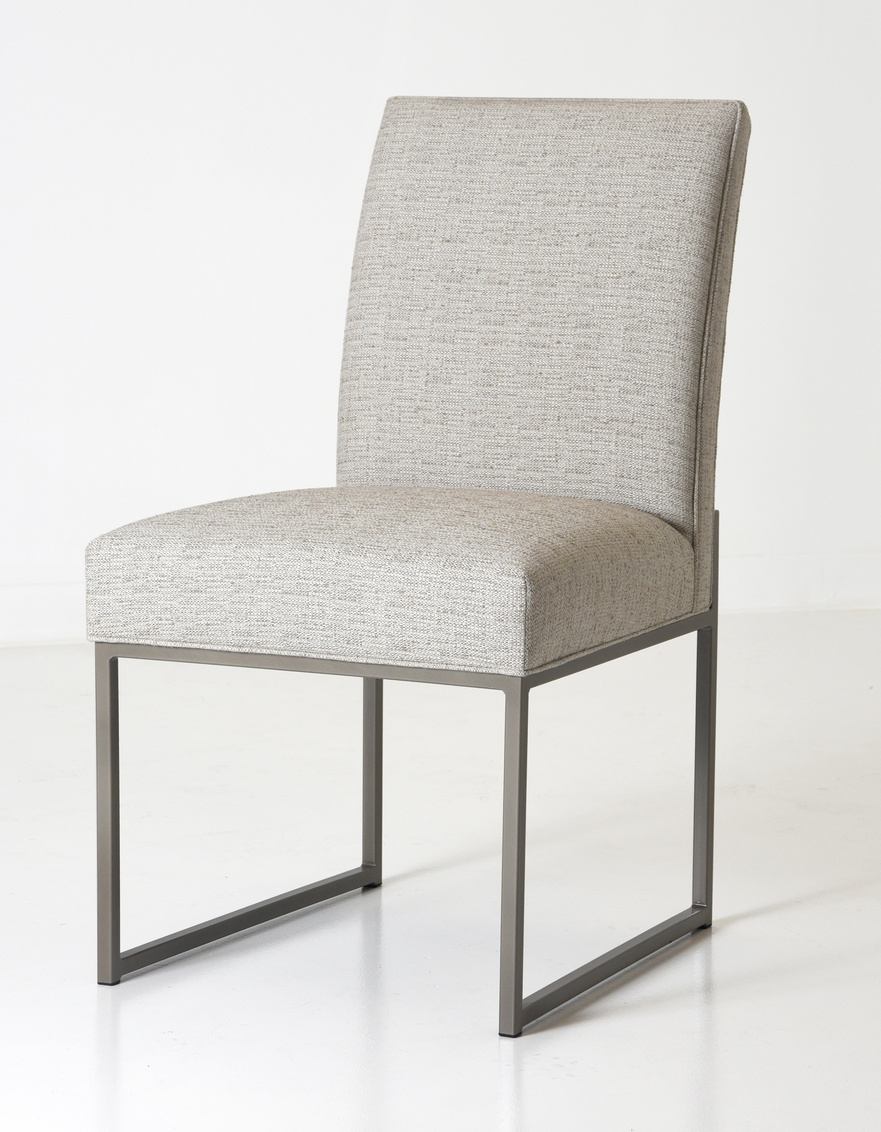 The Vero Dining Chair is transitional and can work in any space. Available in any of our fabrics or leathers. Or personalize the cushion with COM or COL.